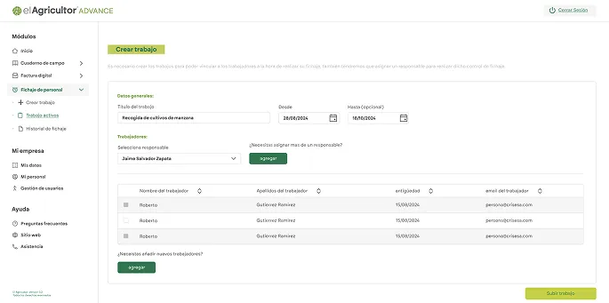 Control horario para trabajadores agrícolas